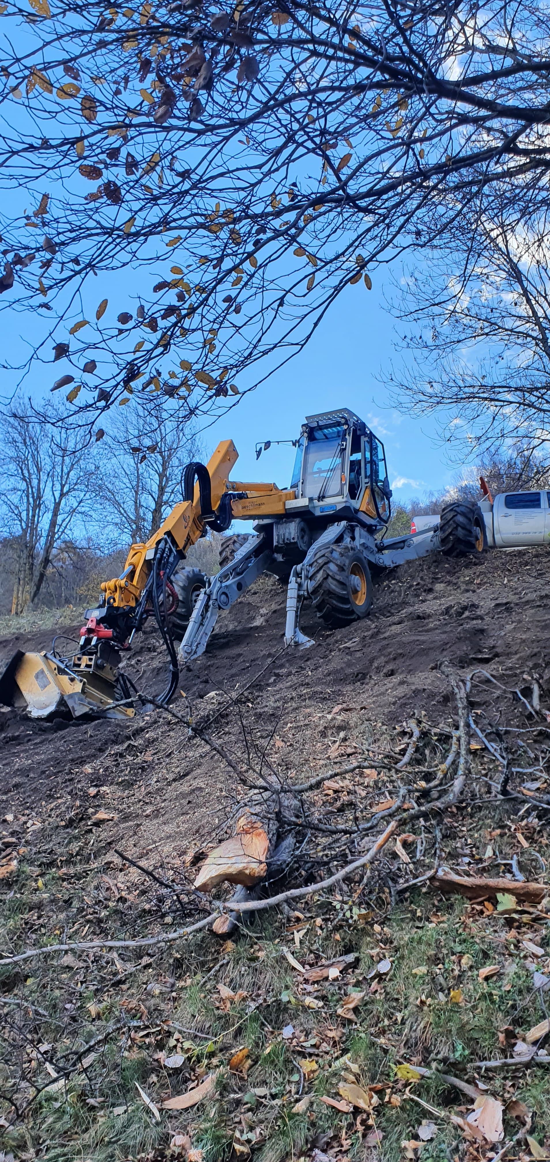 - Böschungs- und Heckenpflege mit Fällgreifer